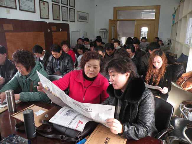 代表们参阅刊登方董事长的报纸