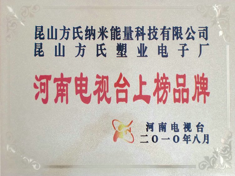 2010年9月我企业“方缘”品牌荣获《河南电视台上榜品牌》