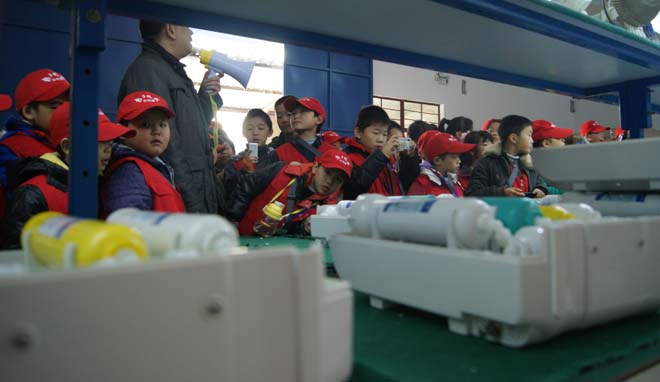 活动当日,近百名的小记者来到我企业,参观了饮水机车间、负氧离子车间、中空纤维膜车间,总经理郭红生全程陪同并讲解相关知识。