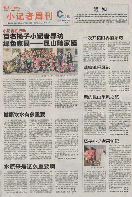 2011年12月10日,为普及“健康饮水的理念”,扬子晚报与我企业联合开展了一场针对扬子晚报小记者们的专题活动——饮水与健康。