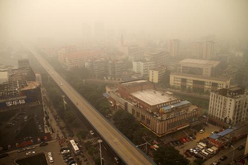 这是6月10日拍摄的阴霾笼罩下的南京市区。南京地区当日出现能见度小于3000米的霾。 新华社发(董金林 摄)