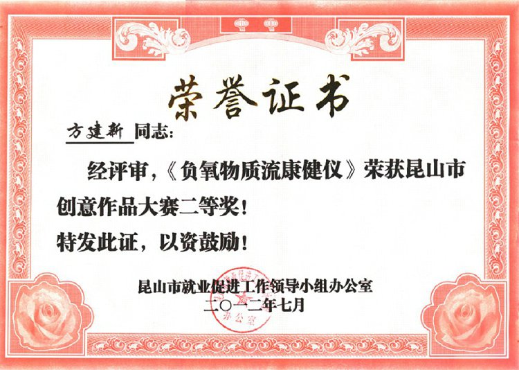 热烈祝贺方董事长荣获昆山市创意作品大赛二等奖