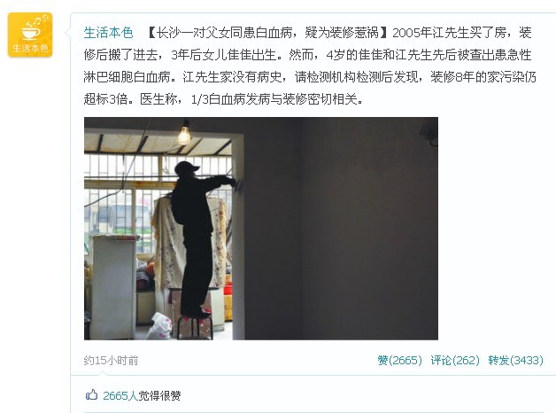 长沙一对父女同患白血病,疑为装修惹祸