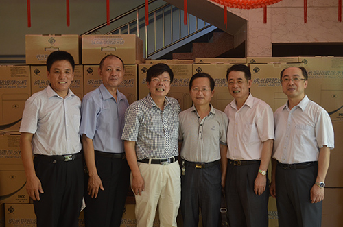 各位领导在捐赠的方缘水机前留影
