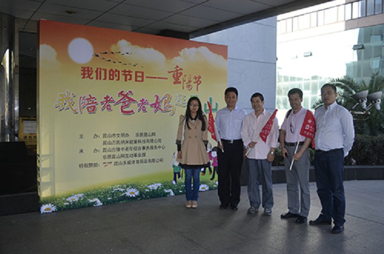 为全方位营造敬老、爱老、助老的社会氛围,为有孝心但迫于工作、生计的压力不能经常陪伴父母的儿女们建立一个亲近爸妈、孝敬父母的平台,重阳节之际,由昆山方氏纳米能量科技有限公司联合昆山市文明办、乐居昆山网共同主办的“我们的节日---重阳节:我陪老爸老妈逛昆山”大型公益活动于今日如期举行。