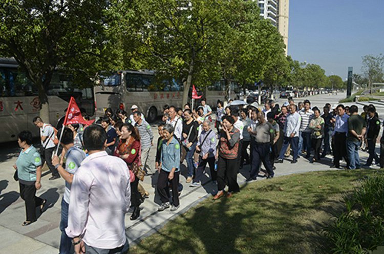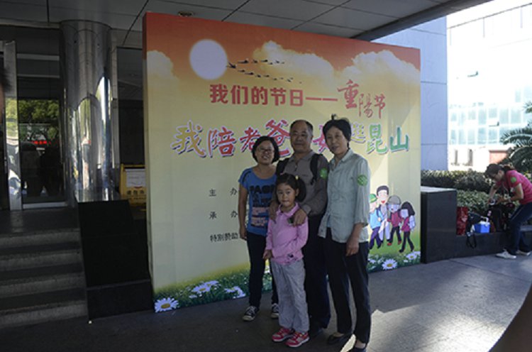 重阳节这一天,天公作美,秋高气爽,一个旅游的好天气,时间也很给力。重阳节恰逢星期天,给上班的儿女们陪老爸老妈逛昆山提供了便利。早上8点30分参加活动的人们便准时来到了集合地点---昆山国际大厦,有儿子陪父母来的;有媳妇陪公婆来的;有一家祖孙三代来的;更有的夫妻二人带上双方父母再加上孩子一家来了七八口人。大家说说笑笑,登记拍照,虽然是刚认识,但没有一点生疏感,就像是街坊邻居走家串门似得,场面是非常和谐融洽,热闹感人。