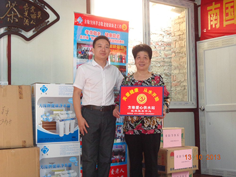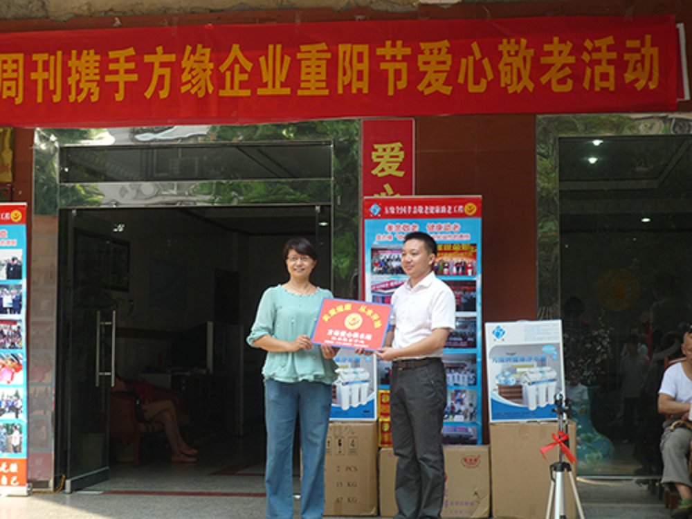 重阳节这一天的一大早,方缘桂林服务中心全体工作人员以及参加桂林仙境点方缘真情2014年中老年春晚的部分演员们便在总经理赵庆尧的带领下,带着捐赠给敬老院的四台净水器、水果、成人纸尿片以及为老年人募捐的衣物等慰问品来到了聚福缘、陶然居等老年福利机构慰问生活在这里的老人们,并为他们表演了精彩的文艺节目。参加演出的大爷大妈个个 精神抖擞,不仅有传统的歌舞,还带来了老年人喜欢的彩调,他们说:“为敬老院的老人们表演既快乐了别人,其实也是在用另外一种方式为自己过节----这叫快乐别人提升自己。”组织这次活动的方缘桂林服务中心经理赵庆尧说:“孝亲敬老是中华民族的传统美德,也是方缘企业文化和方缘社会公益事业的核心内容,我们成方立缘中老年事务综合服务中心就是专门为老年人服务的专职公益机构,我们会竭尽全力,根据老龄化的发展需求,做好老年服务工作。”