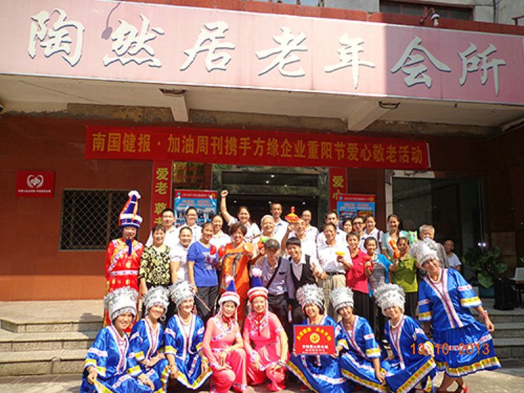 领导及全体员工、爱心艺术团体在陶然居老年会所合影