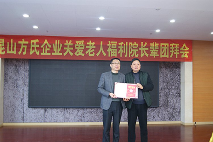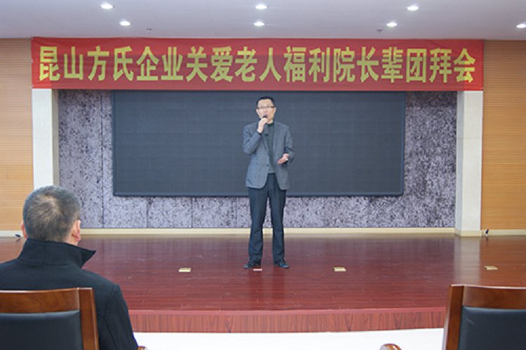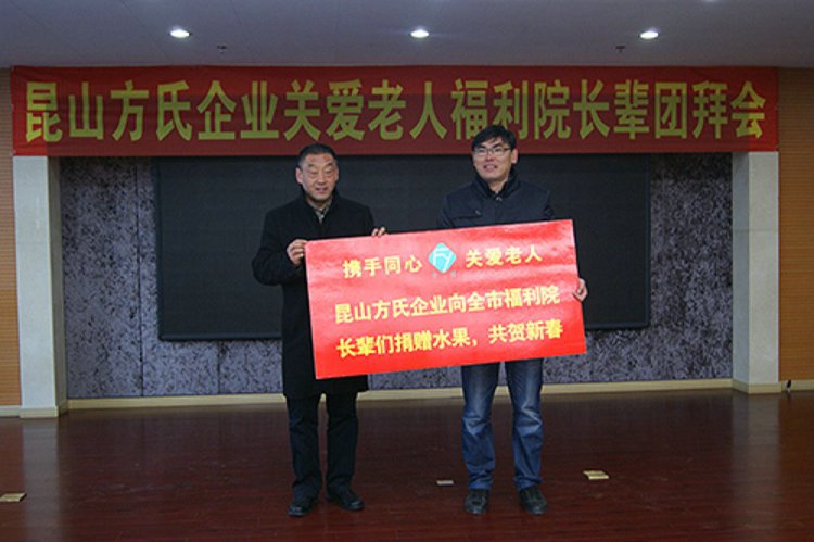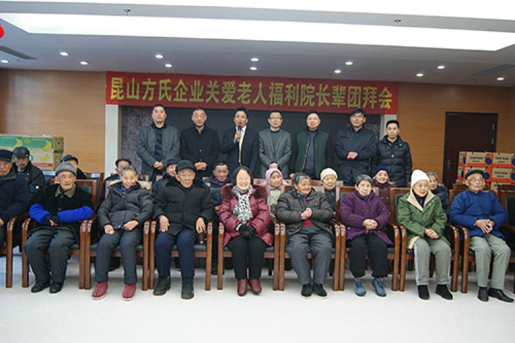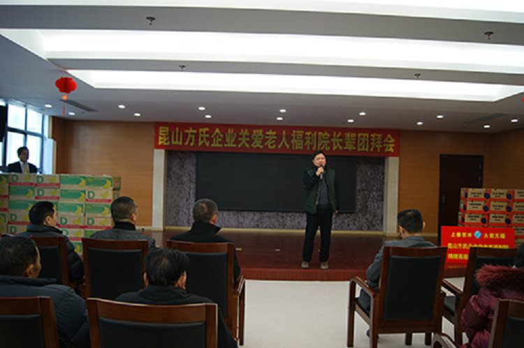 昆山方氏企业2014年关爱老人福利院长辈团拜会于今天上午在玉山敬老院隆重举行,昆山方氏纳米能量科技有限公司董事长方建新、总经理王建民、常务副总赵庆、昆山市民政局副局长严雪林、玉山敬老院院长沈建青等领导出席了团拜会。副总经理苗建伟主持了团拜会。