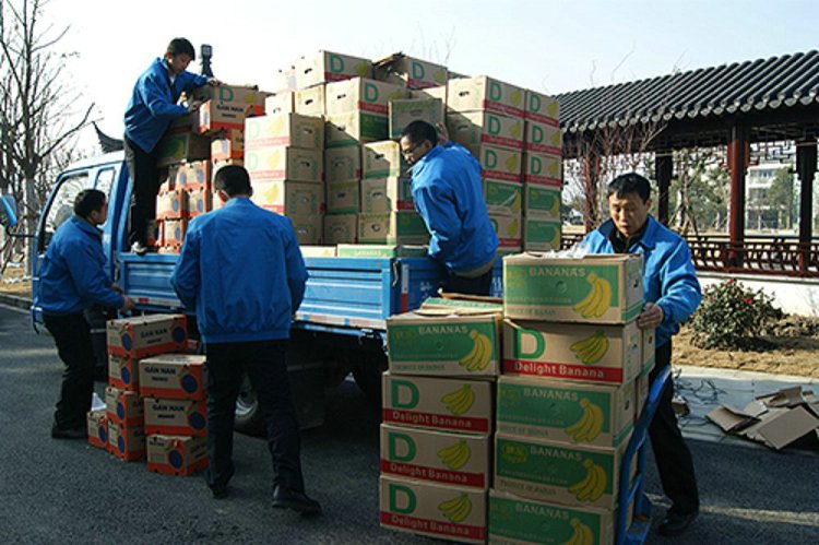 工作人员在卸车