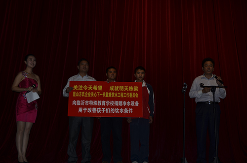 在举国欢度“五一”佳节的喜庆日子里,山东电视台“山东文化流动大舞台”走进临沂组委会携手方氏企业向临沂特殊教育学校捐赠了一批净水设备。