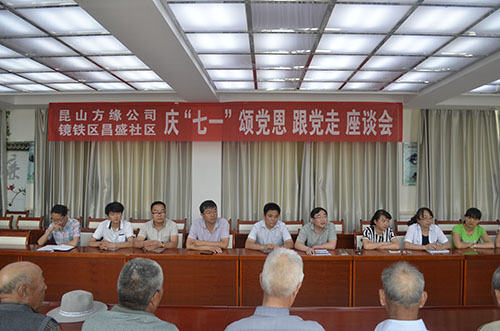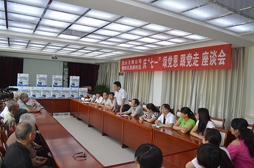 七夕前夕,方式企业联合甘肃嘉峪关市昌盛社区党委共同举办了“庆七一 、颂党恩、跟党走, 庆祝中国共产党建党93周年座谈会”。昌盛社区党总支书记李吉忠,社区主任雷锋等一班领导人,方氏企业副总经理兼方缘中老年事务综合服务中心主任苗建伟,方氏企业驻甘肃办事处主任罗兴军,方氏企业嘉峪关服务中心经理梁聪,昌盛社区老党员及群众代表六十于人参加了座谈会。