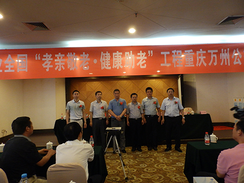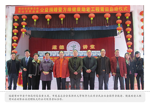 重庆万州区老龄委主任王林、慈善会秘书长王顺培等领导与出席方缘“助老工程” 万州捐赠仪式的方氏企业领导亲切合影