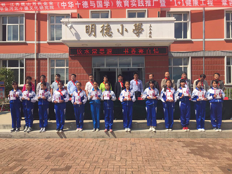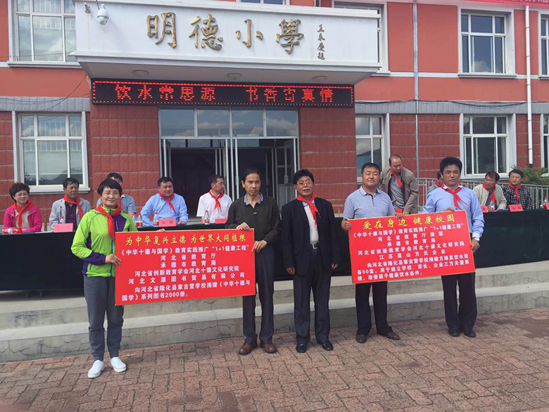 五月二十四日上午,由方氏企业副总经理苗建伟,河北省教育厅捐联会长李振福,秘书长李伟、办公室主任郝斌、河北省创新教育学会秘书长张红组成的“河北省中华十德与国学教育实践推广1+1健康工程”捐赠工作小组(简称1+1健康工程捐赠推广工作小组)来到承德市隆化县举行1+1健康工程捐赠推广活动,拉开了此次“善行河北、健康承德”项目的序幕。本次捐赠推广活动得到了承德市教育局和兴隆县领导的大力支持,市教育局副局长樊文广、副局长肖俊全,兴隆县副县长任强,县教育王局长等领导出席了相关活动。