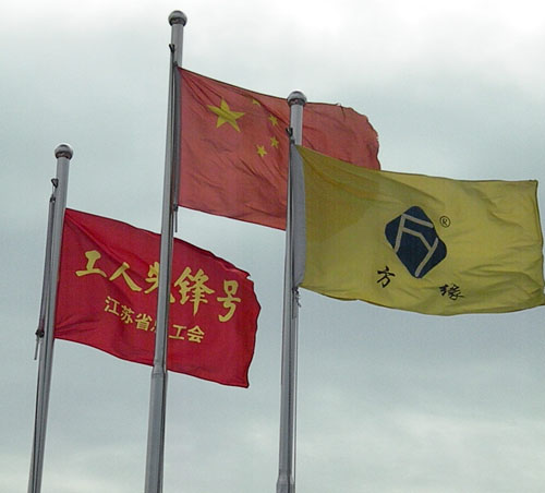 “工人先锋号”和“方缘”旗帜,在空中迎风飘扬