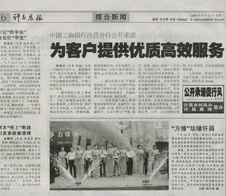我公司许昌营销中心成立。并在《许昌晨报》上刊登。